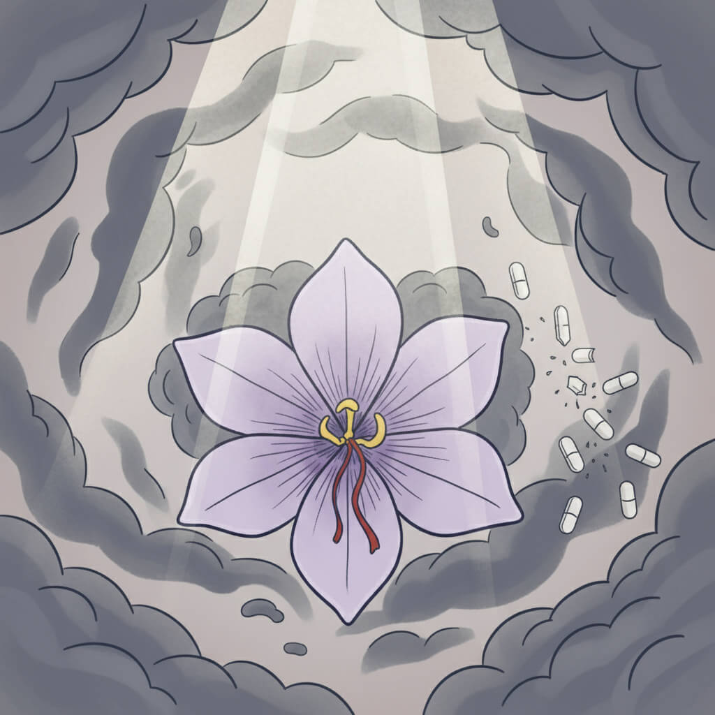 Clinically dosed saffron (crocin, crocetin, safranal) improves mood—no synthetics, no crashes.